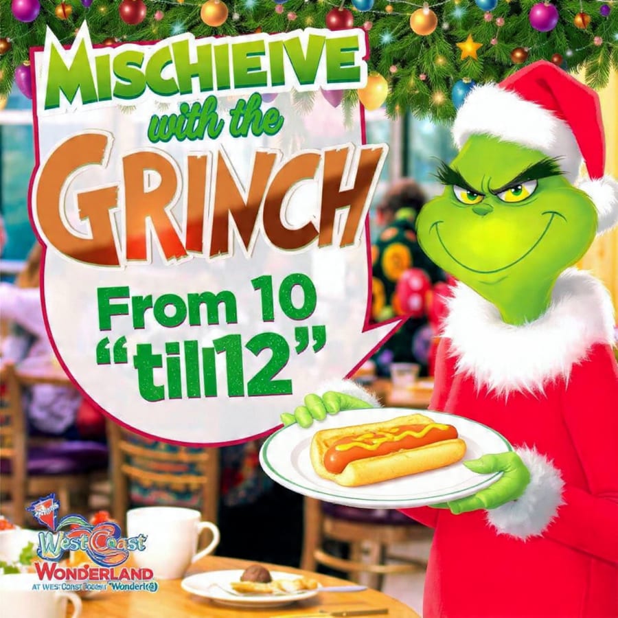 Get ready for Grinch-mas! Join the Grinch at West Coast Wonderland's GRINCH Brunch, Sunday 30th Nov 10-12. For £14.95 per child, enjoy: